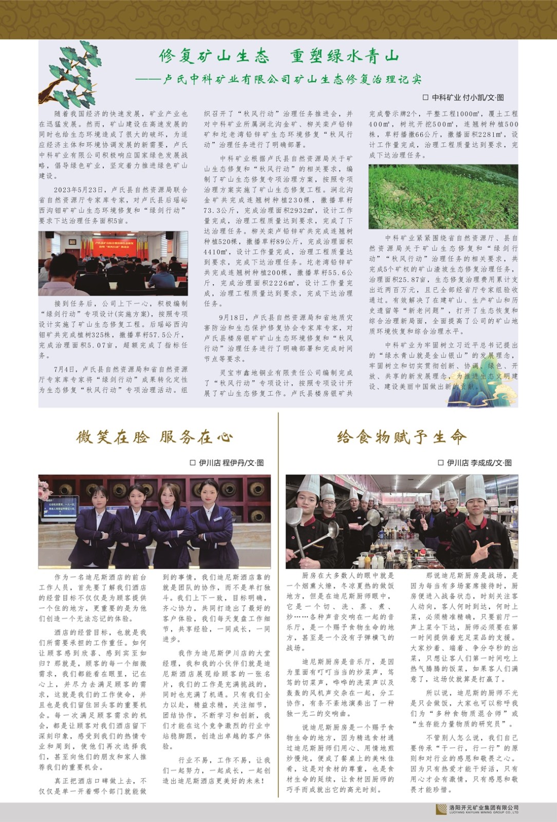 洛陽開元礦業(yè)集團有限公司簡介洛陽開元礦業(yè)集團有限公司,始成立于2006年,位于洛陽市開元大道269號。集團旗下共有十余家全資子公司,業(yè)務涉及有色金屬礦山開發(fā)、礦產品購銷與進出口貿易、房地產開發(fā)、文化藝術、企業(yè)管理與咨詢、資本投資等多個領域。2024年,集團公司銷售總額達7.8億元。民建河南省委委員、民建河南省委企業(yè)委副主任、民建洛陽市委委員、企業(yè)委主任、洛陽民建企業(yè)家協(xié)會會長許明月是公司創(chuàng)始人,現(xiàn)任洛陽開元礦業(yè)集團有限公司董事長。在礦業(yè)領域,洛陽開元礦業(yè)集團擁有多家實力雄厚的子公司:貴州開元礦業(yè)有限公司探、采礦權面積共11.33平方公里;興??h銅鑫礦業(yè)有限公司探礦權面積8.76平方公里,礦山資源潛力巨大;2021年,開元集團與盧氏中科礦業(yè)有限公司開展戰(zhàn)略合作。盧氏中科礦業(yè)有限公司專注于有色金屬的浮選、加工和銷售,擁有強大的技術支撐平臺,是集探、采、選、冶、研為一體的中大型綜合礦業(yè)企業(yè)。目前,盧氏中科王家河1000噸選礦廠已成功投產,雙河金礦、柳關欒盧鉛鋅礦相繼順利開工,樓房銀礦與圪老灣鉛鋅礦的深部探礦重大突破,標志著礦山版圖取得重大進展,為開元集團后續(xù)發(fā)展奠定了堅實基礎。在文化傳媒領域,洛陽市明月美術館通過豐富多樣的藝術展覽、學術研討和公共教育活動,努力打造一個集展覽、交流、教育、研究為一體的綜合性藝術平臺。此外,在金融投資領域,開元集團旗下的北京明峰資本管理有限公司專注于投資具有高增長潛力的優(yōu)秀企業(yè),特別是高科技、新能源、環(huán)保等新興產業(yè),為客戶提供個性化的資產配置服務。在做好企業(yè)經營的同時,開元集團始終不忘企業(yè)的社會責任和家國情懷,以突出的愛心公益事跡,開展了一系列公益慈善活動:“民建林”公益事業(yè)通過“思源基金”“幫幫公益”線上公益平臺,與眾多愛心人士籌措資金20余萬元;資助541名貧困大學生共計270余萬元,推進“數(shù)字助力——河南AI人才培養(yǎng)”;捐款10萬元,馳援京津冀、黑龍江洪水地質災害……公司于2017年底被洛陽市慈善總會評為“洛陽慈善風云榜——十大愛心集體”。洛陽開元礦業(yè)集團有限公司秉承持續(xù)發(fā)展理念,憑借多年來良好的企業(yè)信譽與經營業(yè)績,與全國多家企業(yè)建立了良好合作關系,受到社會各界的一致好評,多次榮獲“納稅標兵”“先進企業(yè)”“招商引資模范企業(yè)”等榮譽稱號?;赝麃頃r路,開元人勠力同心,以“闖”的精神和“創(chuàng)”的勁頭,一路披荊斬棘,踏過千山萬水;展望新未來,開元人凝心聚力,不執(zhí)于“舊”,無畏于“新”,秉承“勇于跨越,追求卓越”的企業(yè)精神,乘著國家高質量發(fā)展新征程的東風,跨過高山,越過大海,向著集團多元化、國際化的目標,逐夢遠航,跨越前行!